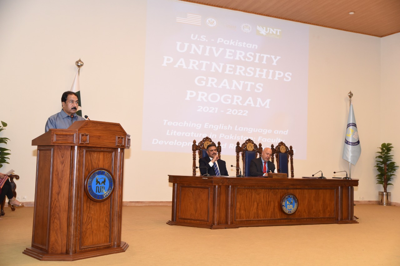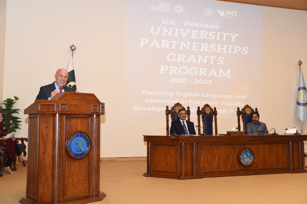 Pro-Rector Academics, Prof. Dr Muhammad Safeer Awan, in his address focused on the achievements of the previous NUML-UNT partnership program and his resolution to achieve goals of the present project. Mr. Phillip Assis, Cultural Affairs Officer at the U.S. Embassy, DG, NUML, Brig Syed Nadir Ali and Dr Masood Ashraf Raja also addressed the audience.