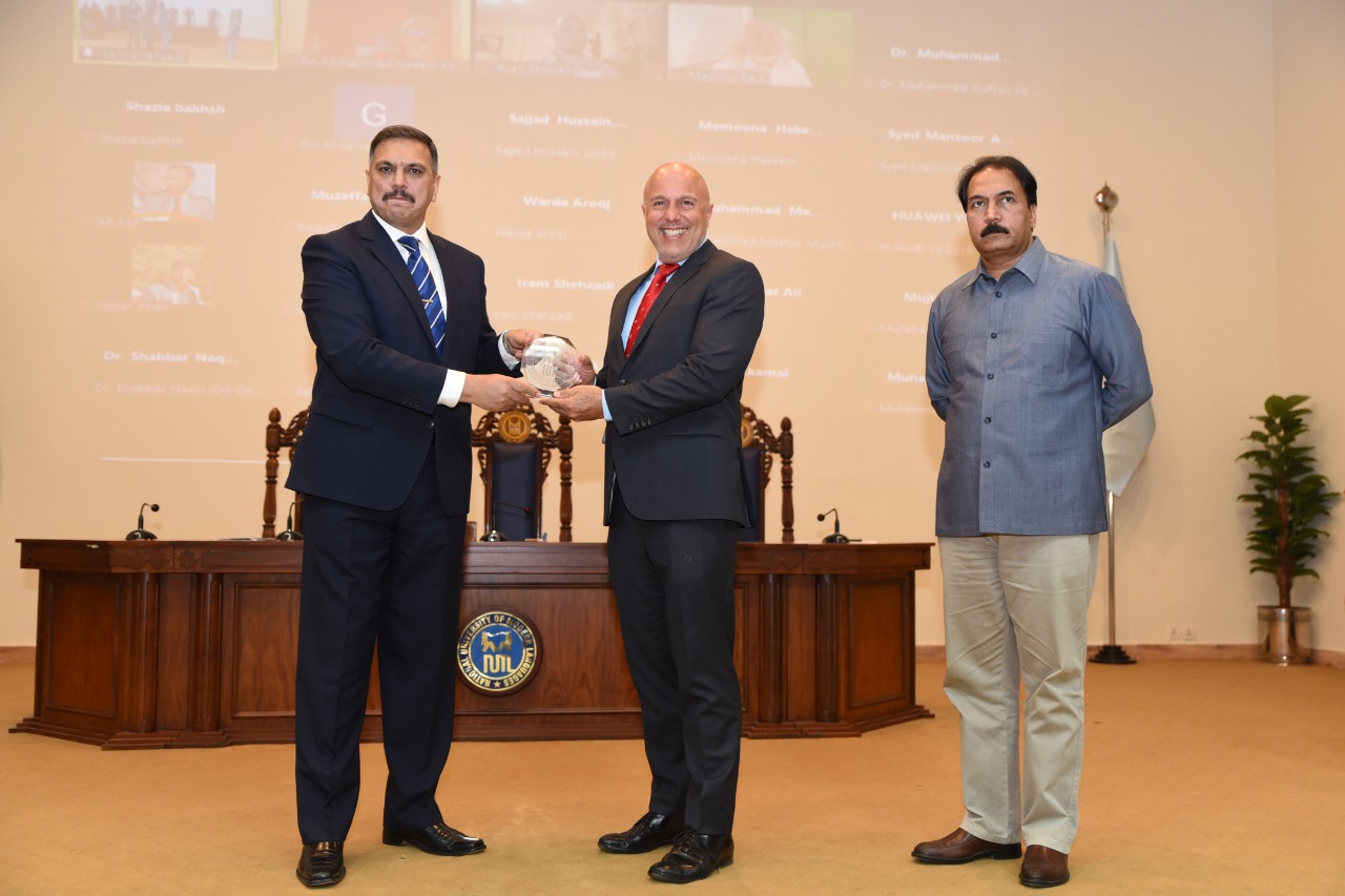 At the end DG NUML, Brig Syed Nadir Ali and Pro-Rector Academics, Prof. Dr Muhammad Safeer Awan presented souvenir to the chief guest, Mr. Phillip Assis. The project team also had a group photograph with the chief guest.