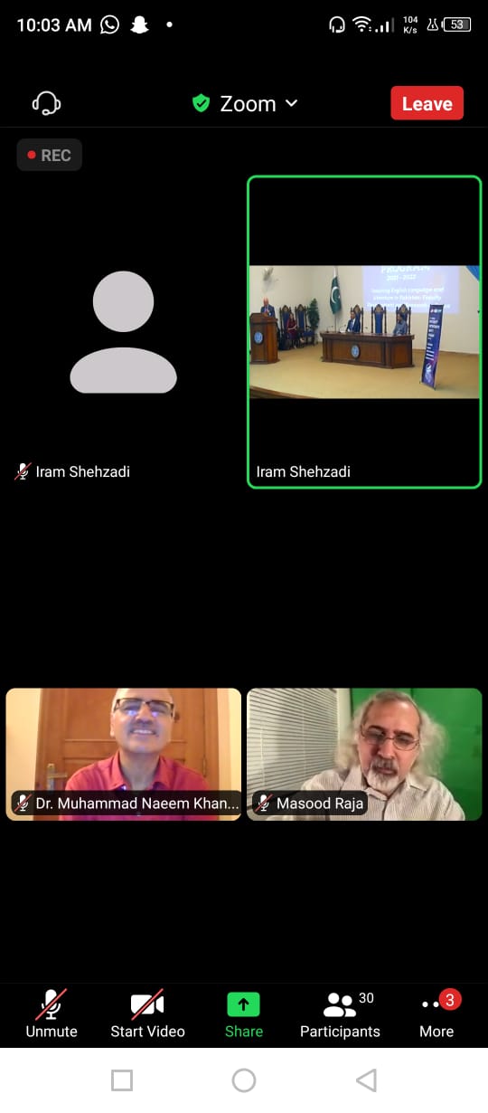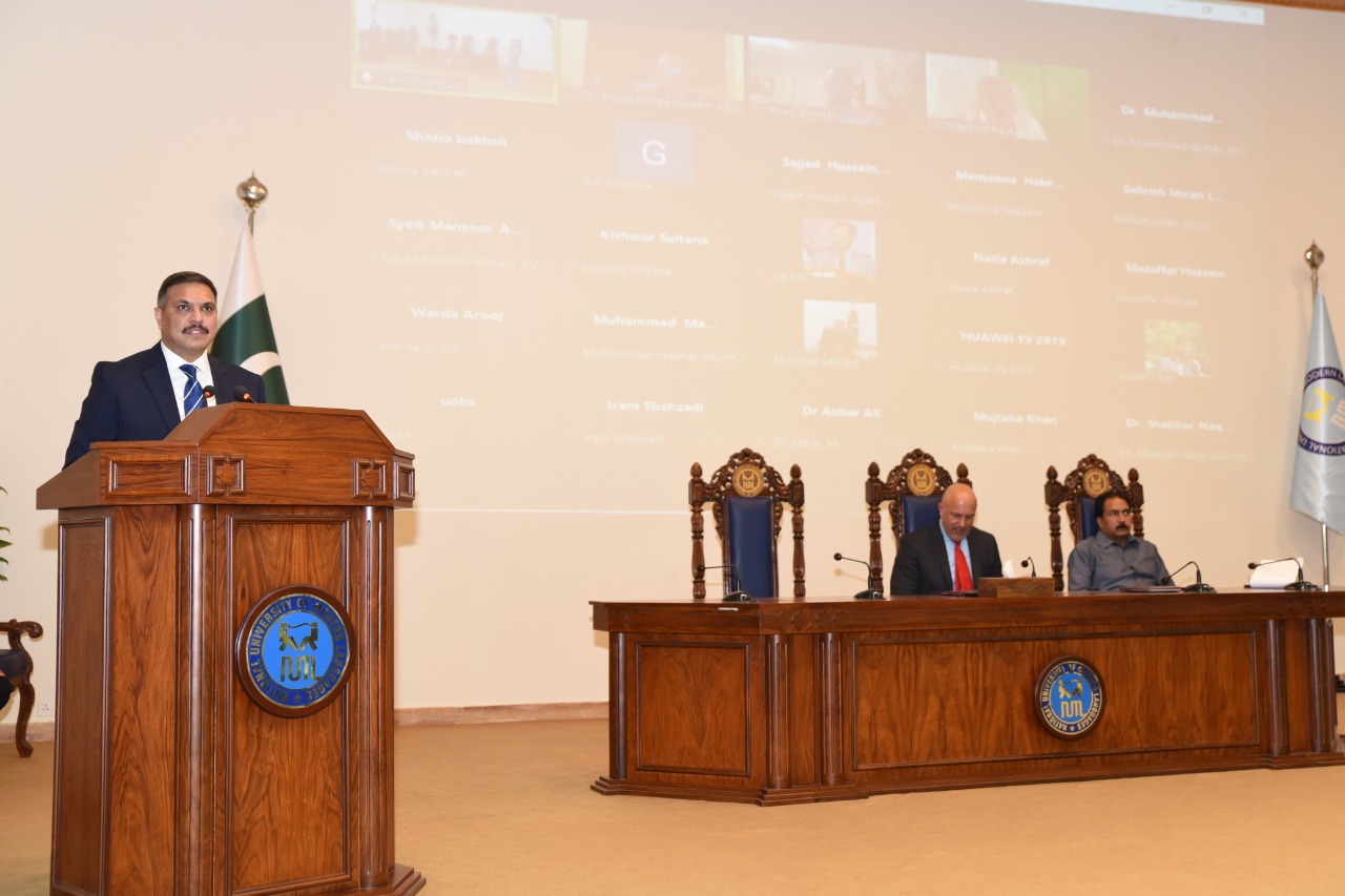 The Inaugural/opening ceremony of the University Partnerships Grants Program was held at the Salam Block auditorium in NUML on 26th April 2022.As for the participants of the ceremony, the guest of honor was Mr. Phillip Assis, Cultural Affairs Officer at the U.S. Embassy in Islamabad, Sabir Sharif (Representative of the U.S. Embassy) and Shahram Niazi (Representative of USEFP), DG, NUML, Brig Syed Nadir Ali, Pro-Rector Academics, Prof. Dr Muhammad Safeer Awan, Pro-Rector Research, Deans and Faculty Members. The VCs and faculty members of the six partner universities attended the ceremony online. Moreover, Dr Ryan Skinnell and Dr Masood Ashraf Raja graced the occasion by attending the event online.